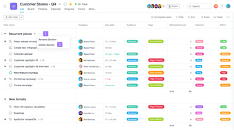 Oprócz zarządzania zadaniami, Asana oferuje narzędzia do ustalania terminów, zostawiania komentarzy i dołączania plików. Te funkcje poprawiają komunikację i współpracę, pozwalając członkom zespołu dzielić się aktualizacjami, wyjaśniać odpowiedzialności i przechowywać wszystkie informacje związane z projektem w jednym miejscu, zapewniając, że wszyscy pozostają zgodni z wizją zespołu.